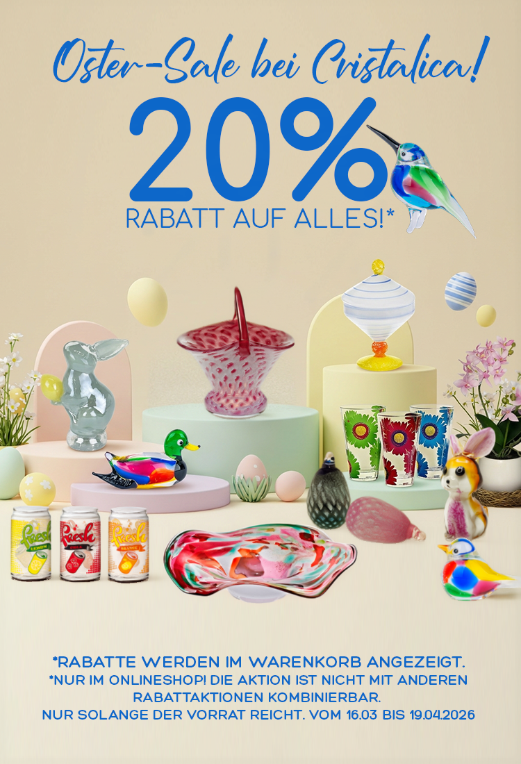 Willkommen bei Cristalica, Ihrem Experten für handgefertigtes Glas in höchster Qualität! Bei uns können Sie eine breite Palette an einzigartigen Glasprodukten und Kristallglaswaren online kaufen. Die Auswahl reicht von handgefertigten Vasen über mundgeblasene Gläser bis hin zu kunstvollen Skulpturen oder Produkten des täglichen Bedarfs.