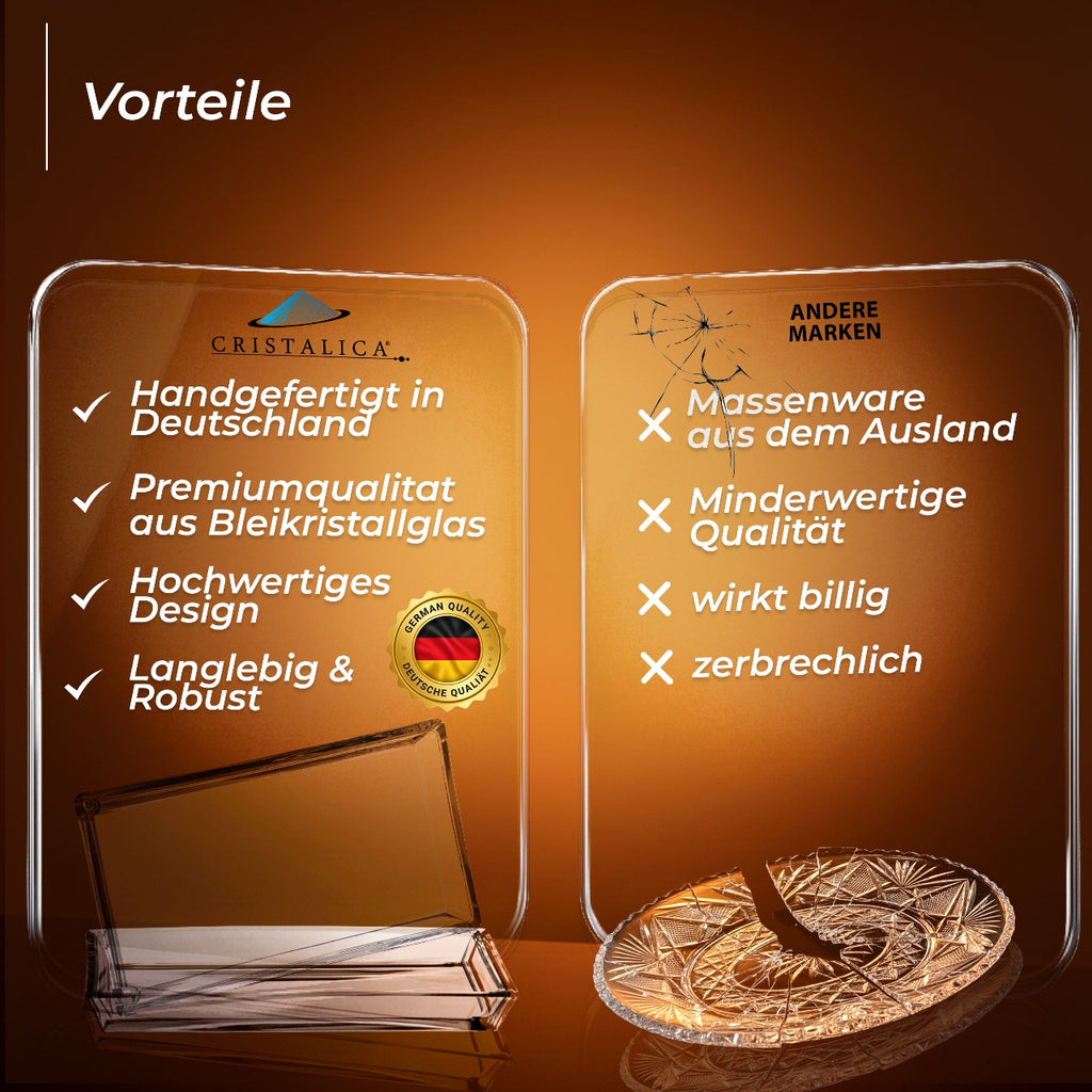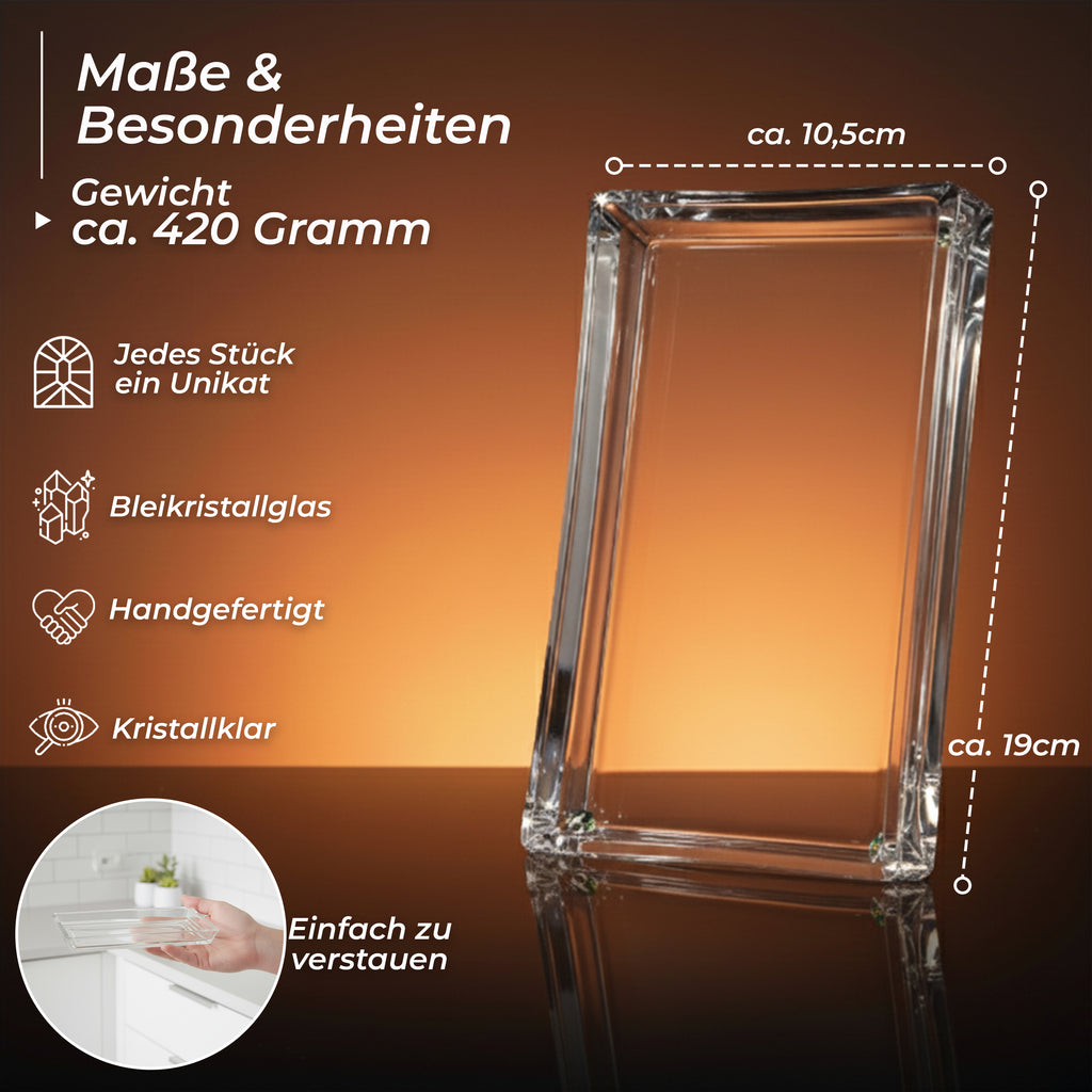 - Länge ca. 19 cm/ Breite ca. 10,5 cm / Höhe ca. 2,5cm / Material Bleikristall / Farbe transparent, klar